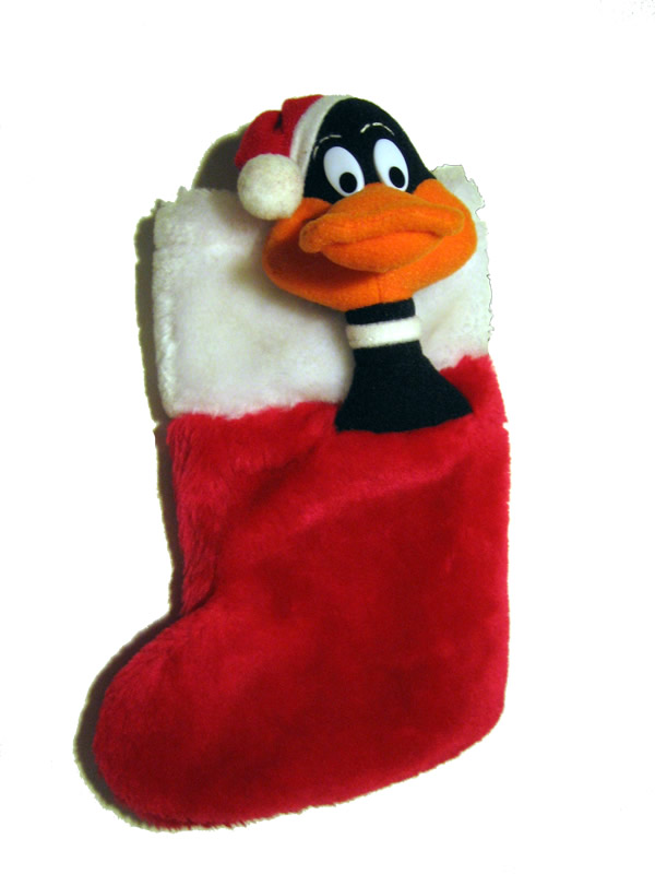Calzina della Befana Duffy Duck Anche questa bella paperina è un regalo di mia mamma. La trovo bellissima. Rossa, vellutata, con le gote paffute e l'aria impunita. Trovarla appesa la mattina dell'Epifania mette allegria al solo vederla! Ha dimensioni estramamente contenute, una decina di caramelle c'entra a stento
